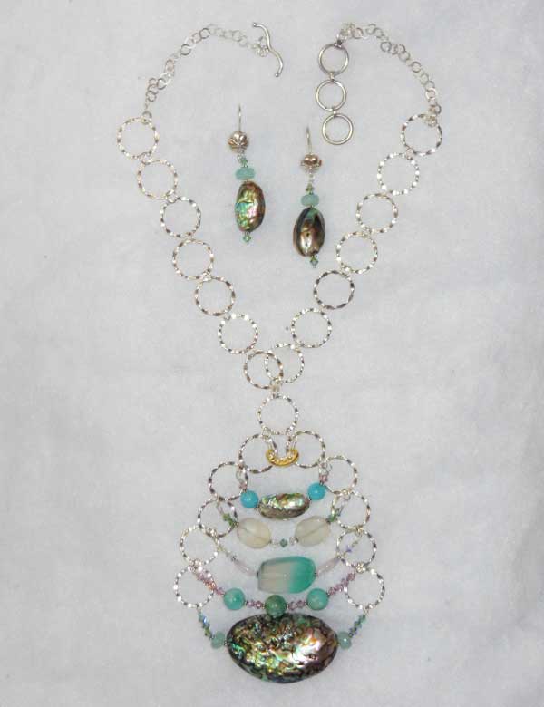 abalone, chalcedony, quartz, crystals, sterling, Silver Art Clay, gold paint